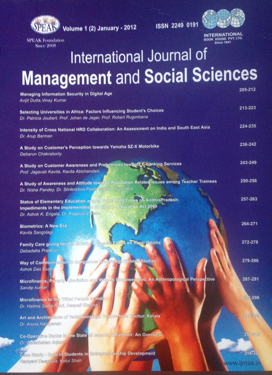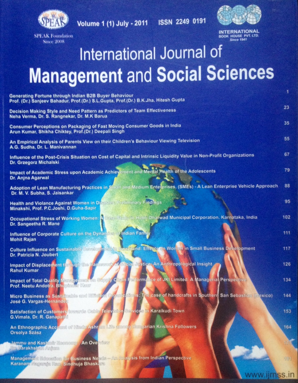 International Journal of Management and Social Sciences (IJMSS)Index Copernicus Journal id: 6913 ISSN 2249-0191 Archive Issues Follow Us